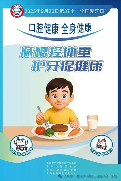 2025年9月20日是第37个“全国爱牙日”,今年的主题是:减糖控体重,护牙促健康。